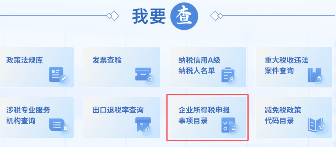 《企业所得税申报事项目录(202510版)》原文,可在国家税务总局网站“纳税服务”栏目【我要查】下载,如下图所示: