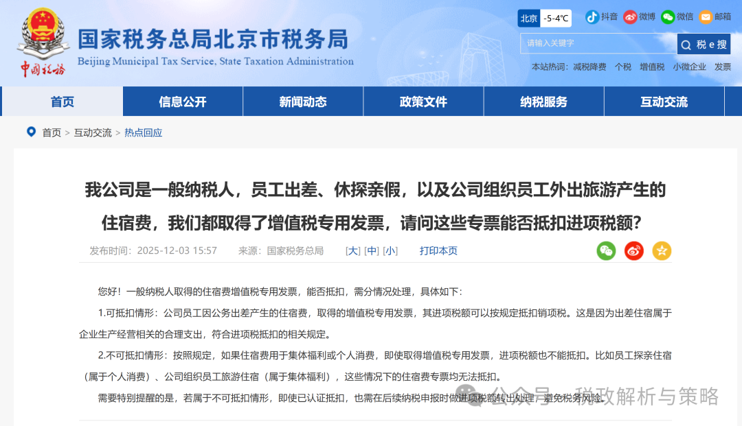 2.不可抵扣情形:按照规定,如果住宿费用于集体福利或个人消费,即使取得增值税专用发票,进项税额也不能抵扣。比如员工探亲住宿(属于个人消费)、公司组织员工旅游住宿(属于集体福利),这些情况下的住宿费专票均无法抵扣。
