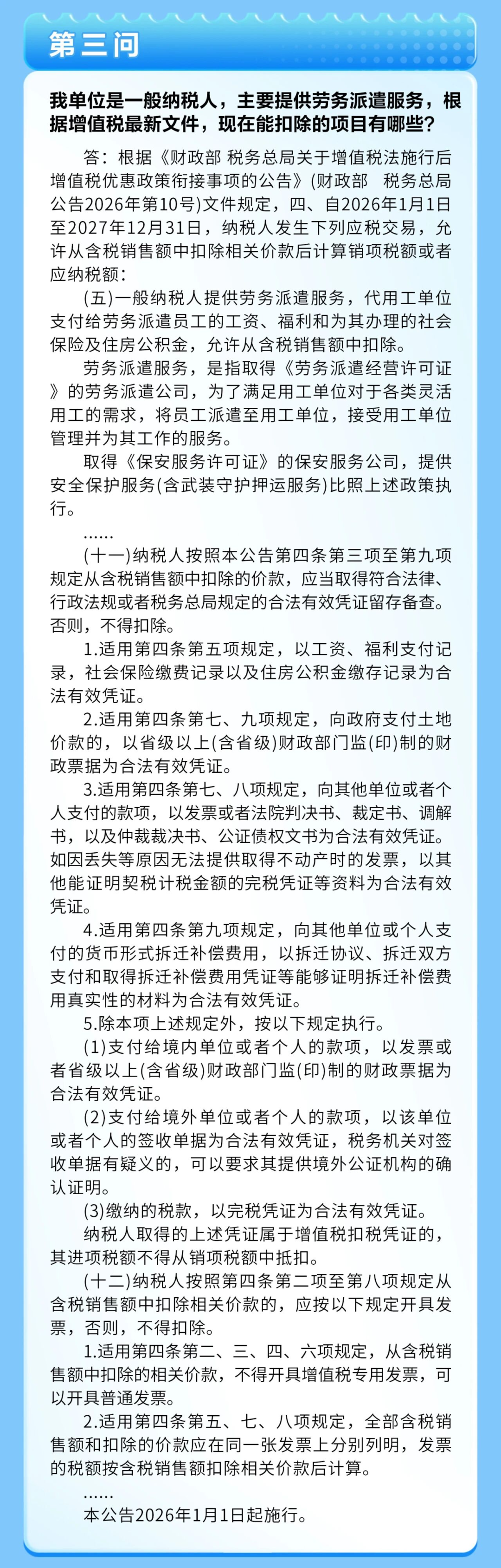 一般纳税人提供劳务派遣服务能扣除哪些项目?税局官方解答12366七大热点问题!